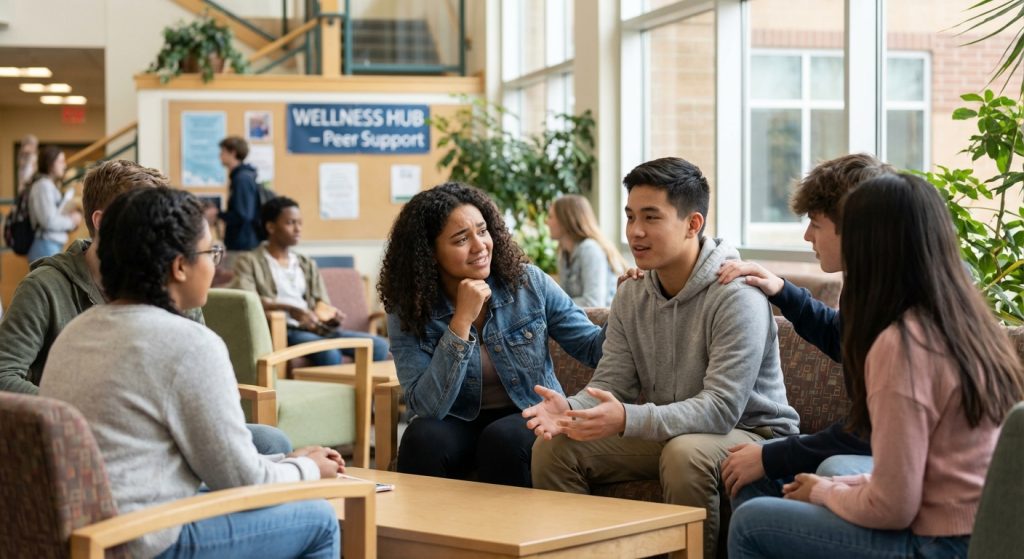 Bạn có thể tìm đến các câu lạc bộ sức khỏe sinh viên, các phòng tư vấn tâm lý học đường, hoặc các chương trình giáo dục đồng đẳng do trường tổ chức.