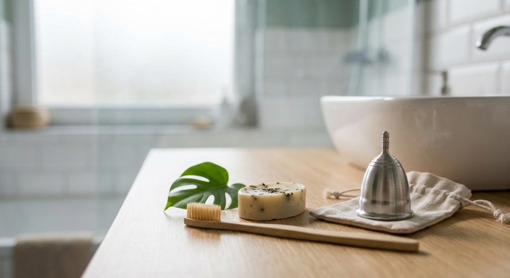 Đầu tiên, về vệ sinh cá nhân hàng ngày, việc sử dụng các sản phẩm như cốc nguyệt san hoặc băng vệ sinh vải có thể giảm đáng kể lượng rác thải nhựa. Chúng không chỉ thân thiện với môi trường mà còn tiết kiệm chi phí về lâu dài. Ngoài ra, hãy tìm kiếm các loại xà phòng, sữa tắm và dầu gội có thành phần tự nhiên, không chứa vi nhựa (microplastics) và có bao bì tái chế được. Bởi vì vi nhựa là một vấn đề môi trường nghiêm trọng, chúng có thể tích tụ trong hệ sinh thái và ảnh hưởng đến sức khỏe con người.