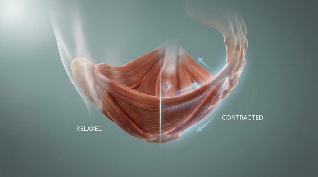 Hình ảnh minh họa một người đang thực hiện bài tập Kegel một cách chính xác, tập trung vào việc siết chặt cơ bụng dưới.