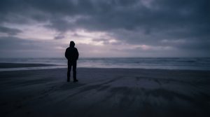 Một người ngồi một mình trong căn phòng tối, nhìn ra cửa sổ, với ánh sáng mờ ảo chiếu vào, thể hiện sự cô đơn và trống rỗng bên trong.