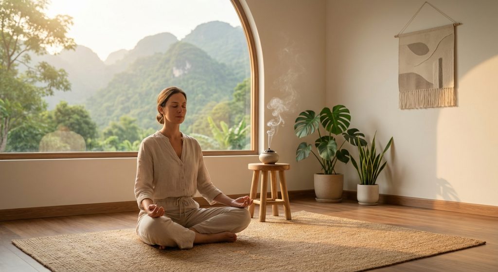 Việc ngồi thiền đều đặn giúp bạn rèn luyện khả năng tập trung. Bạn học cách quan sát suy nghĩ mà không bị cuốn theo. Điều này củng cố sự kết nối tâm-thân.