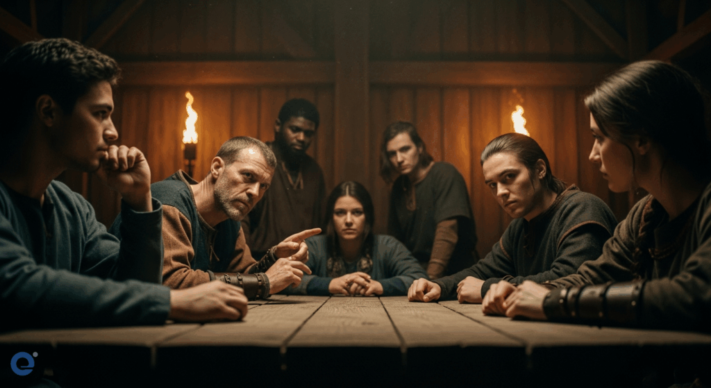 Người Viking, dù thường được miêu tả là những chiến binh dũng mãnh, cũng không ngần ngại sử dụng mưu mẹo để đạt được mục tiêu. Họ có thể giả vờ rút lui để dụ địch vào bẫy, hoặc sử dụng chiến thuật “bóng ma” để gây hoang mang. Trong Ma Sói, kỹ năng lừa dối là vũ khí chính của phe Sói, nhưng dân làng cũng có thể sử dụng nó để bảo vệ bản thân hoặc đánh lừa Sói.