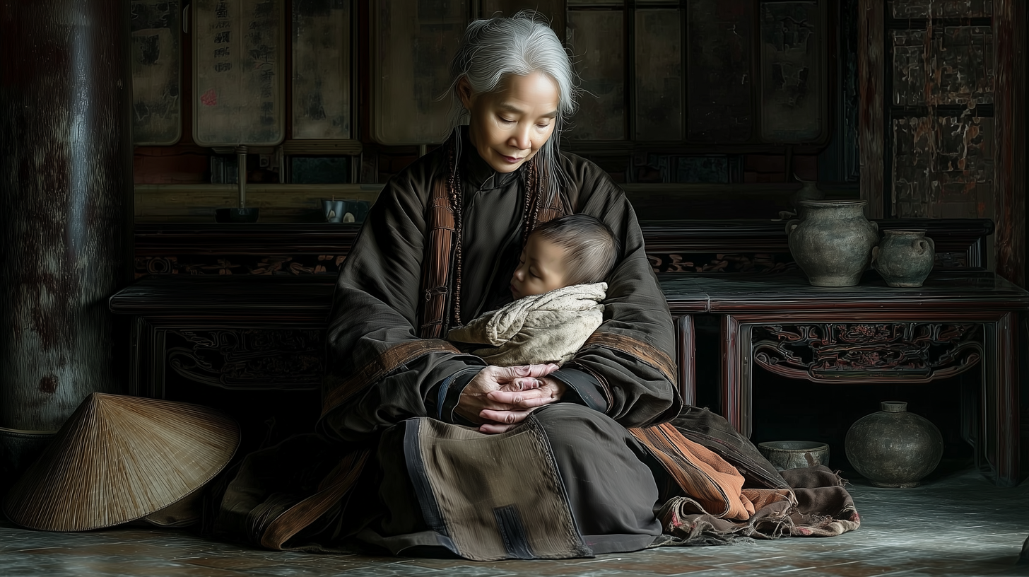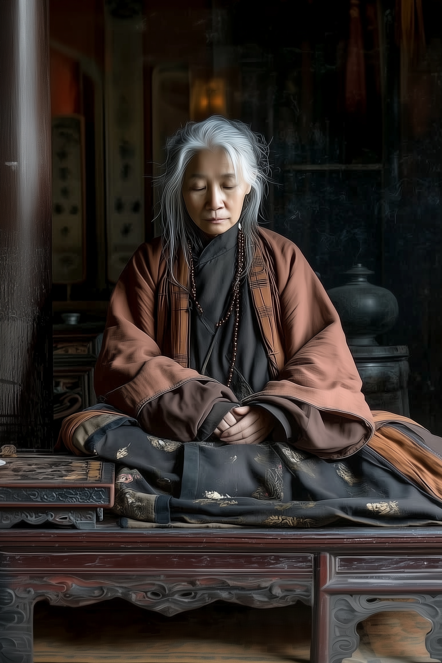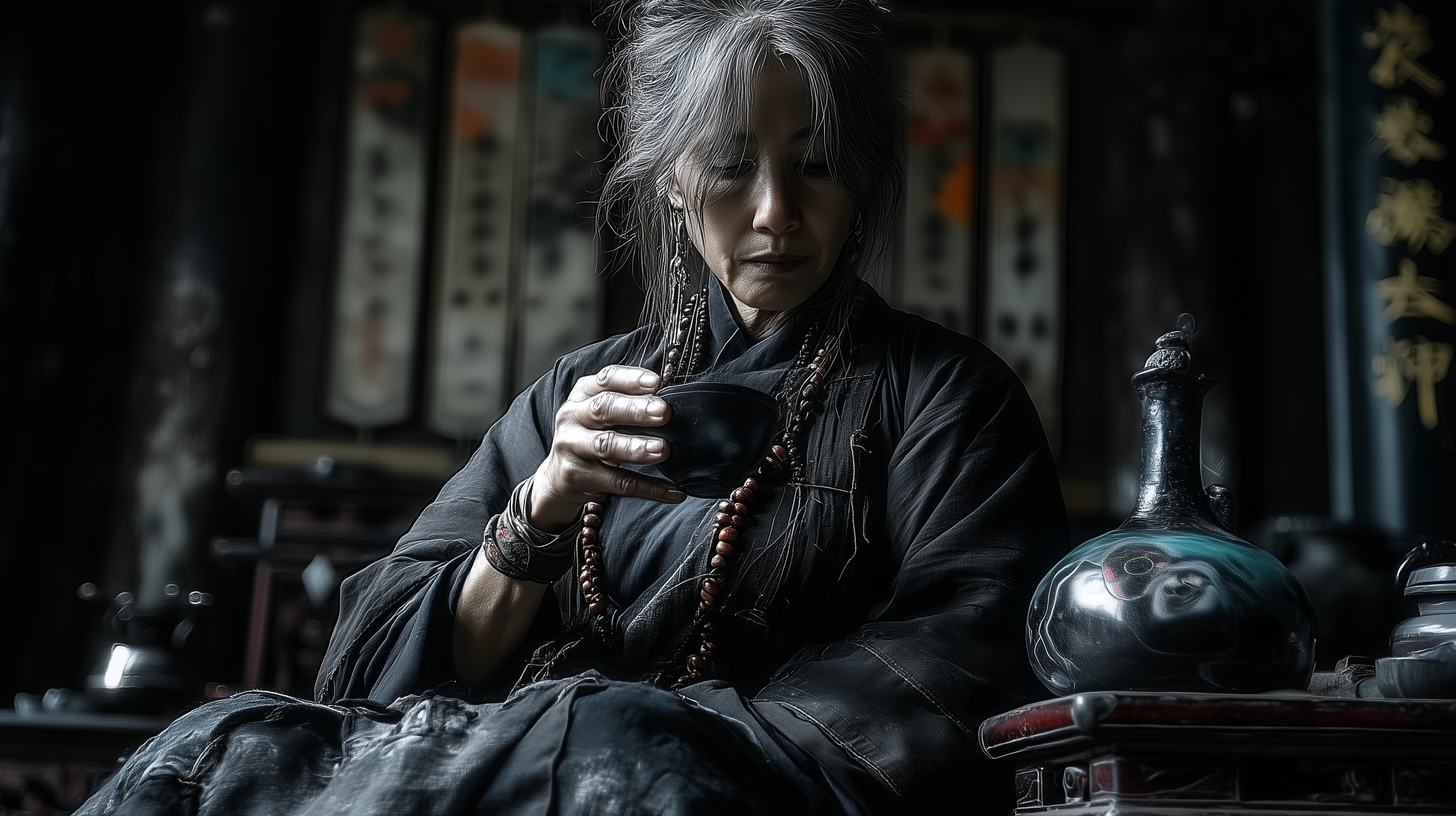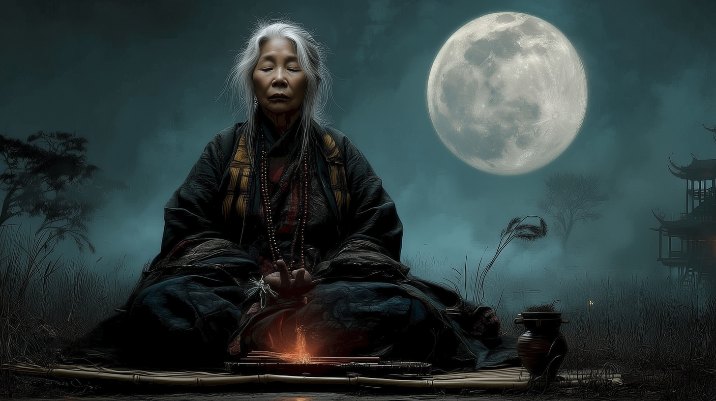 Một bà mo tóc dài bạc trắng, sống cạnh đình Nguyệt Ảnh. Bà cầm bó nhang trầm và chuông đồng nhỏ, nghe tiếng gió thổi như có ai đó đang nói thầm bên tai; sáng đếm tàn nhang, chiều coi mây nổi, khuya lẩm bẩm tụng kinh. Nghe kể, hồi nhỏ, bà là trẻ mồ côi ăn xin, sau có bà đồng nổi tiếng đi ngang thấy là người có vía nên nhận nuôi và truyền nghề lại. Sau khi học xong thuật pháp, cô hành nghề Đoán Mộng, giải mộng cho bà con; về già, bà càng ít xem hộ người ta, chỉ nhắc dân giữ lễ, cách cúng bái để xin tai qua nạn khỏi.