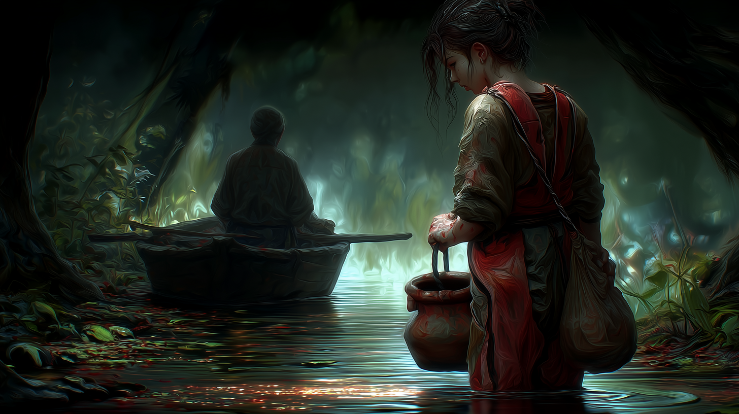 Xà Thần, một con rắn thành tinh xưng bá ở vùng thượng lưu nhưng bị thương nặng trong một đợt tranh vương, trôi dạt qua làng Nguyệt Ảnh được một cậu bé làng chài vớt được và cứu giúp. Trong hình dạng một con rắn nhỏ, cô được cậu bé chăm sóc, cho thức ăn cá nhỏ nuôi dưỡng. Cảm kích ơn này, sau này khi đã khôi phục, cô vẫn lặng lẽ hóa thành một cô gái trong làng, luôn âm thầm giúp đỡ cậu bé cho tới khi cậu đã là một ông lão đánh cá.