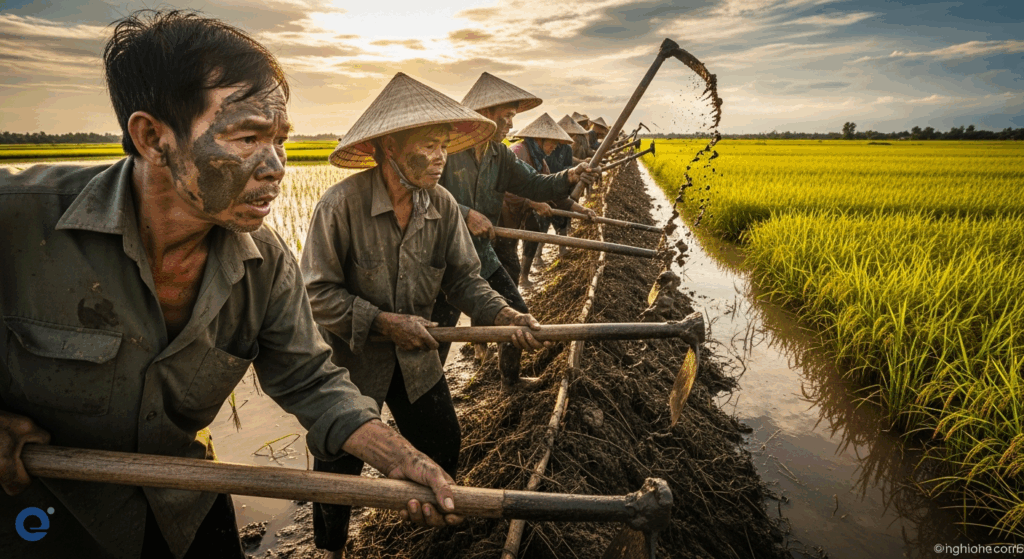Họ cùng nhau tạo nên một “tập thể giữ nước” vững mạnh. Công việc của họ là đảm bảo nước được phân phối công bằng, phục vụ tưới tiêu cho mọi người dân. Điều này giúp tăng cường “lá chắn” phòng thủ trước thiên tai, đảm bảo an ninh lương thực và sự ổn định cho xã hội. Khi nguồn nước được quản lý tốt, đời sống nhân dân ấm no, đất nước thêm phần vững mạnh.