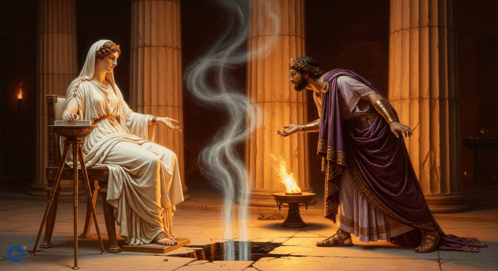 Một trong những ví dụ nổi tiếng nhất về “lưỡi dao hai mặt” của Delphi là câu chuyện của Vua Croesus xứ Lydia. Ông đã hỏi Pythia liệu ông có nên tấn công Đế chế Ba Tư hay không. Câu trả lời nhận được là: “Nếu Croesus vượt qua sông Halys, ông sẽ phá hủy một đế chế vĩ đại.” Croesus, tin rằng mình sẽ chiến thắng, đã tiến hành cuộc tấn công. Tuy nhiên, đế chế vĩ đại mà ông phá hủy lại chính là vương quốc của mình.