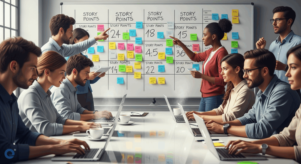Nói một cách đơn giản, story points là một con số, một đơn vị đo lường cho cả nhóm biết về độ khó của một “story” (hạng mục công việc). Việc ước lượng này thường diễn ra trong các buổi thảo luận về Product Backlog. Nó cho phép nhóm so sánh các “story” với nhau, tập trung vào độ phức tạp thay vì thời gian chính xác.