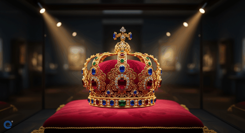 Việc sử dụng vàng trong chế tác vương miện thể hiện sự giàu có và quyền uy tối thượng của nhà vua. Vàng được coi là kim loại quý giá, tượng trưng cho mặt trời và sự bất tử. Do đó, vương miện vàng không chỉ là biểu tượng của quyền lực thế tục. Nó còn mang ý nghĩa tâm linh sâu sắc, kết nối nhà vua với thần linh.